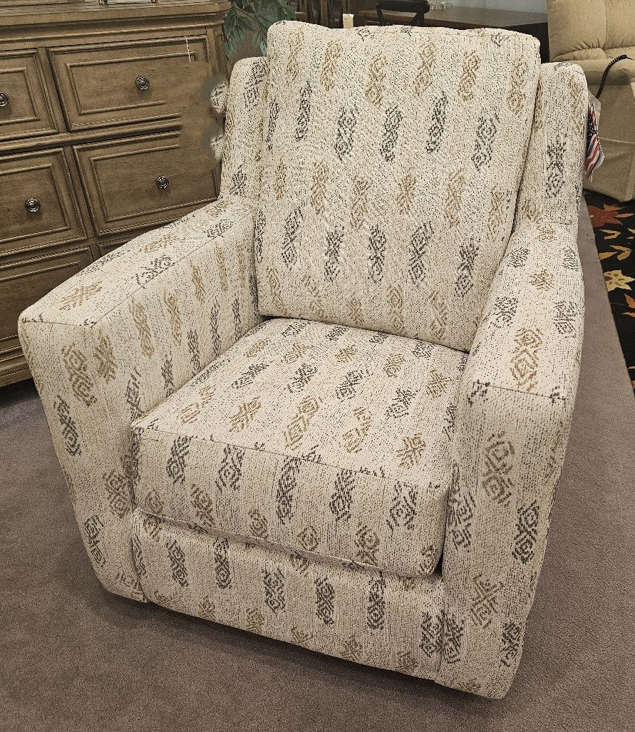 A sleek barrel-back swivel glider the Diva has clean crisp transitional lines. Stylish ski-slope wings flank the attached back and really complete the silhouette. A removable seat cushion made with Energex polyfoam is a considerable upgrade from the competition. The Diva has a small footprint so it’s perfect when used in pairs whether in living or bedrooms, to media and family rooms. Fabric: Simba Pebble