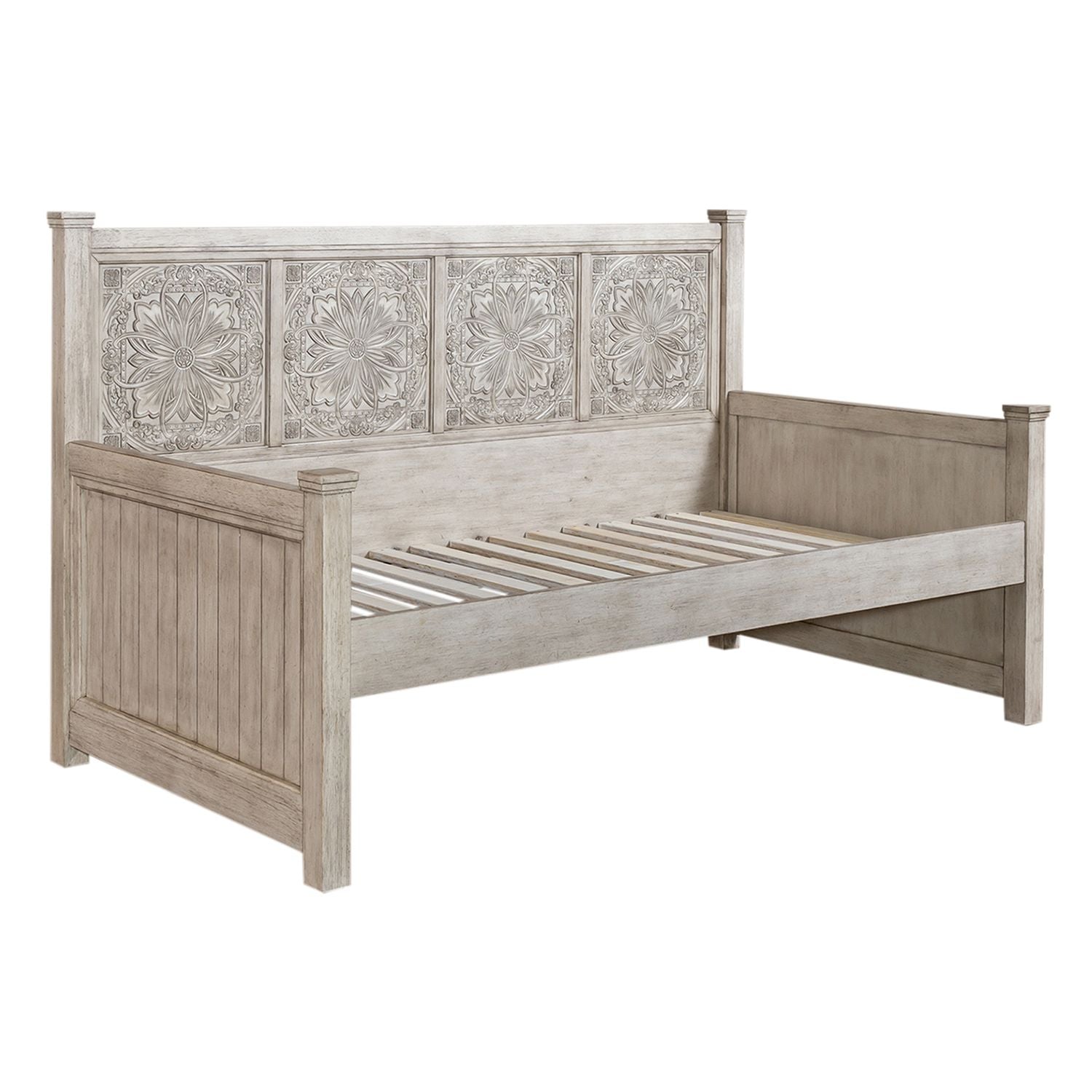 Heartland Twin Daybed with Trundle with planked panel design finished an Antique White finish.